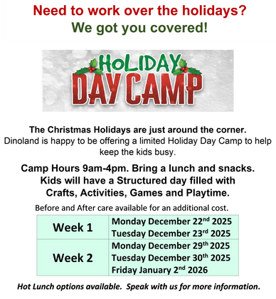 Looking for care during the Christmas break? We got you covered. Daily camps available. Day camps run 9am-4pm.