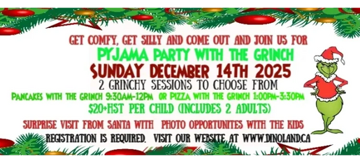 Come out and Join us for our Annual Holiday Party!! We are having a Pyjama Party with the Grinch on Sunday December 14th.