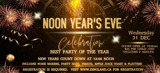 Come out and Join us for our Annual Noon Years Eve Celebration!! On Wednesday December 31st, Come out and COUNT DOWN TO 12:00 (NOON) WITH US!!